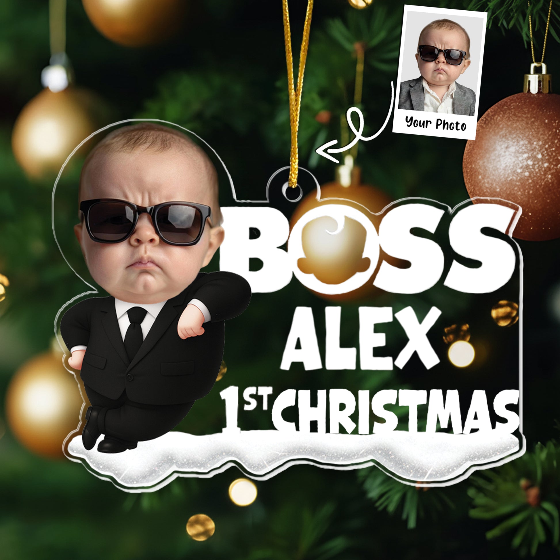 Baby 1st Christmas Cute Baby - Personalized Acrylic Photo Ornament