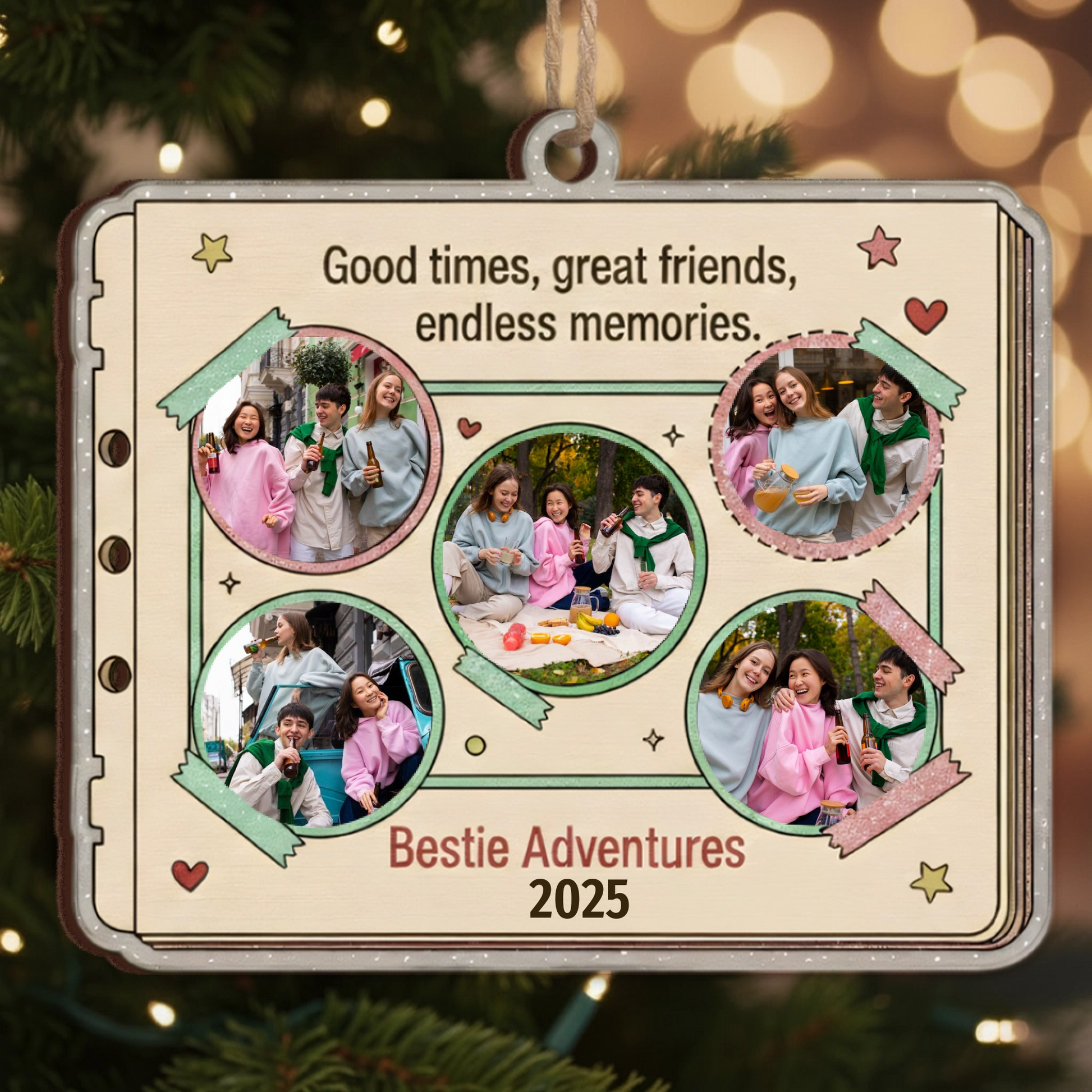 Whether you're gifting it to your best friend or adding it to your own Christmas tree, this scrapbook-style ornament brings a touch of warmth and sentiment to the holiday season. It’s the perfect way to honor your journey together and celebrate the adventures that shaped your bond.
