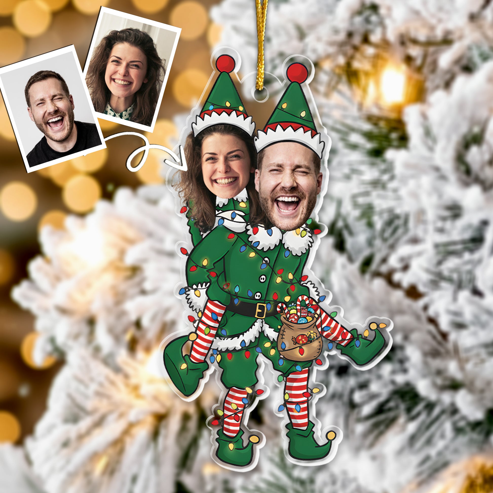 Couple Funny Elf - Personalized Acrylic Photo Ornament